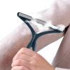Plaukų surinkimo šepetėlio kraštas turi minkštą silikoną, kad nepažeistumėte audinių.