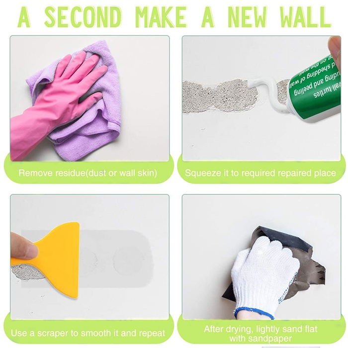 Pagaliau galite greitai ir itin lengvai sutaisyti visus sienų pažeidimus savo namuose! Ji patikimai ir nepastebimai taiso įdubimus, įbrėžimus, vinies skyles, lupamas sienas, nukritusį tinką ir viską, kas gali sugadinti jūsų gražias baltas sienas.
