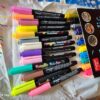 Akriliniais žymekliais galite kurti įvairaus storio linijas ar piešinius - nuo ploniausių iki storiausių (galiukas nuo 1 iki 3 mm)!