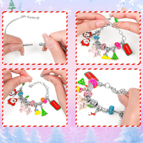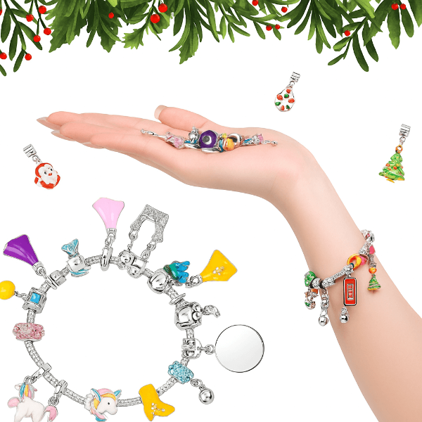 Rinkinyje yra 2 auksinės apyrankės ir 22 skirtingi pakabukai, sukurti pasakų stiliumi. Populiari princesių ir vienaragių tema sužavės kiekvieną mergaitę.