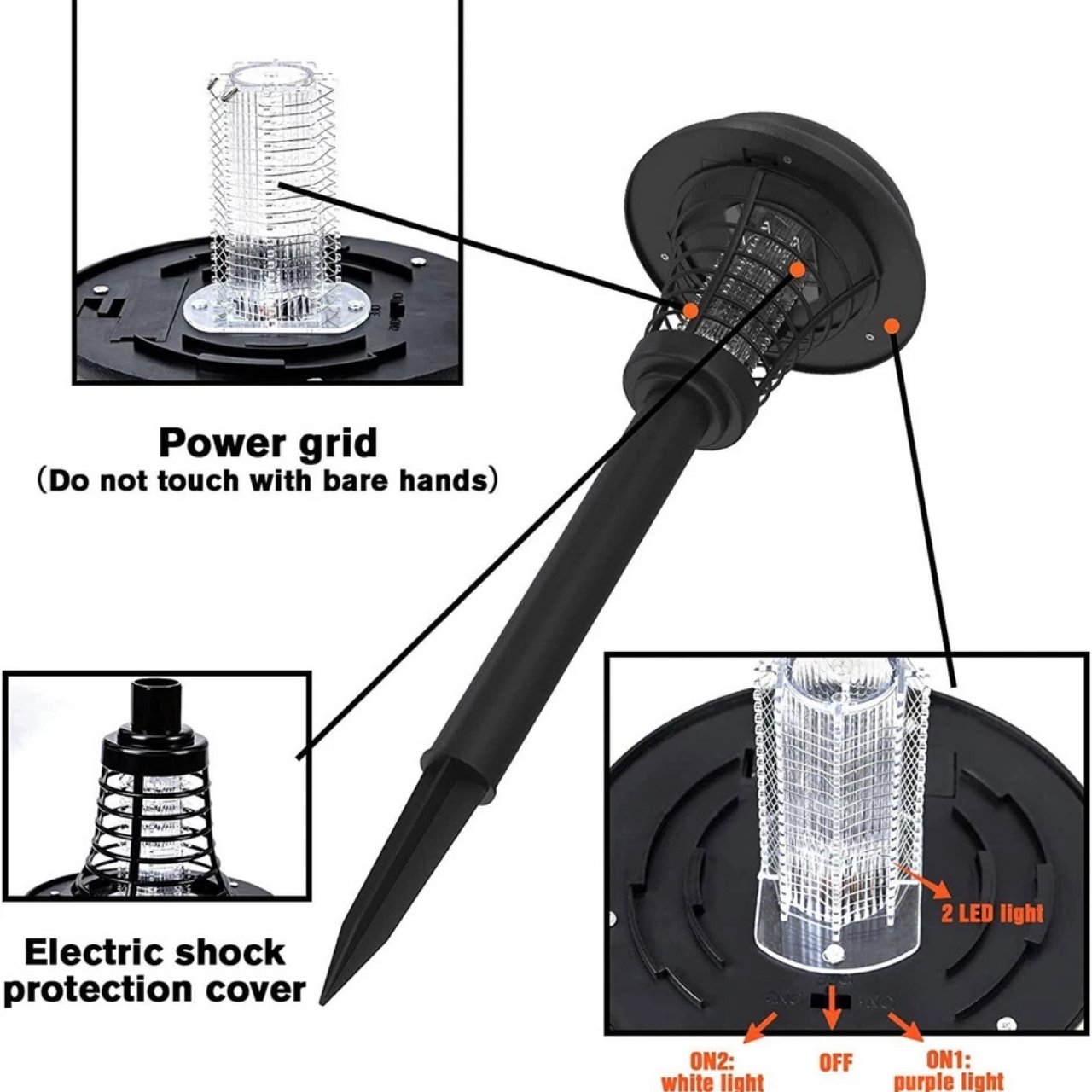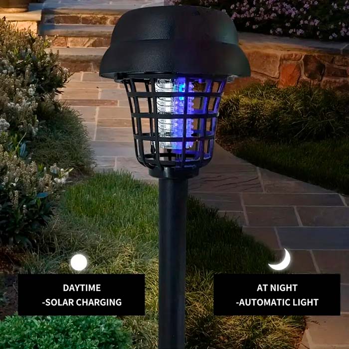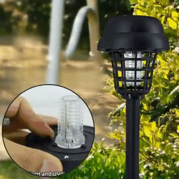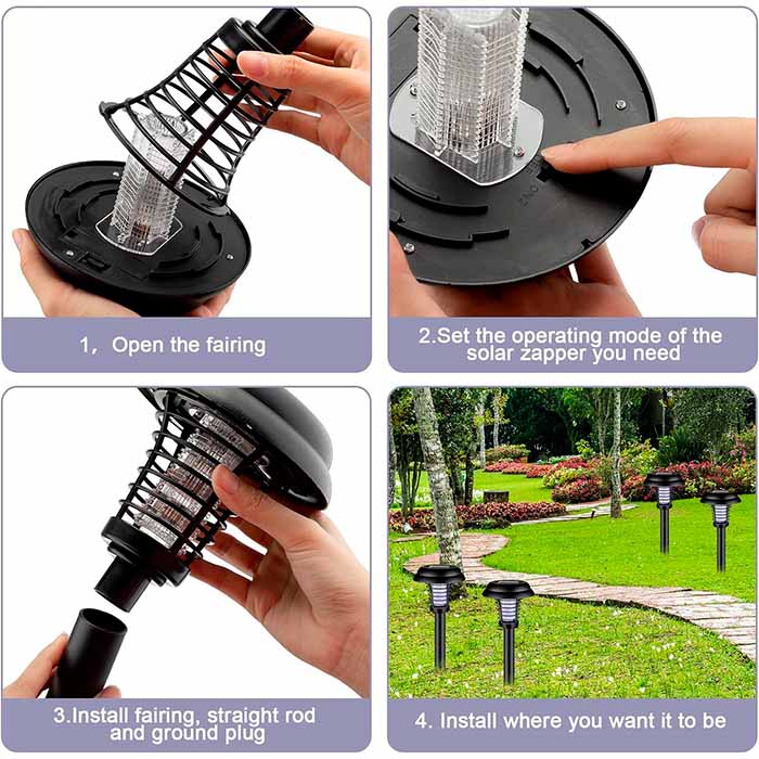 Įsmeikite apatinę dalį į žemę. Lempos viršuje yra mygtukas. Perkelkite mygtuką į ON ir lempa pradės veikti. Veikimo laikas yra nuo 8 iki 12 valandų.