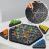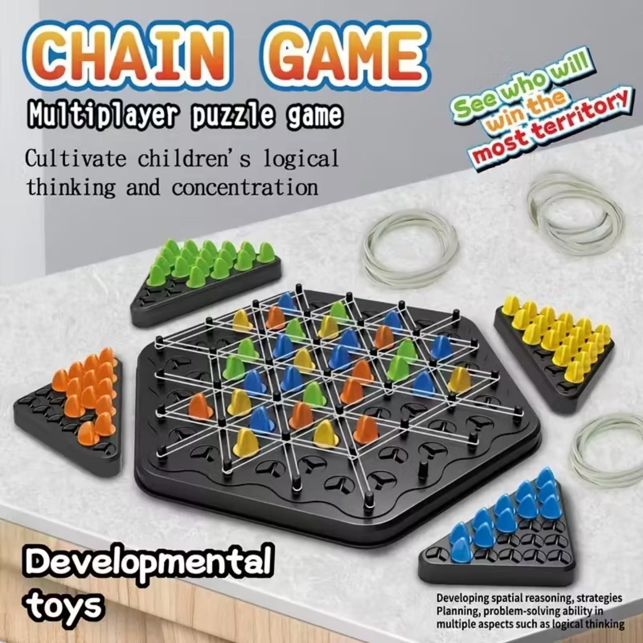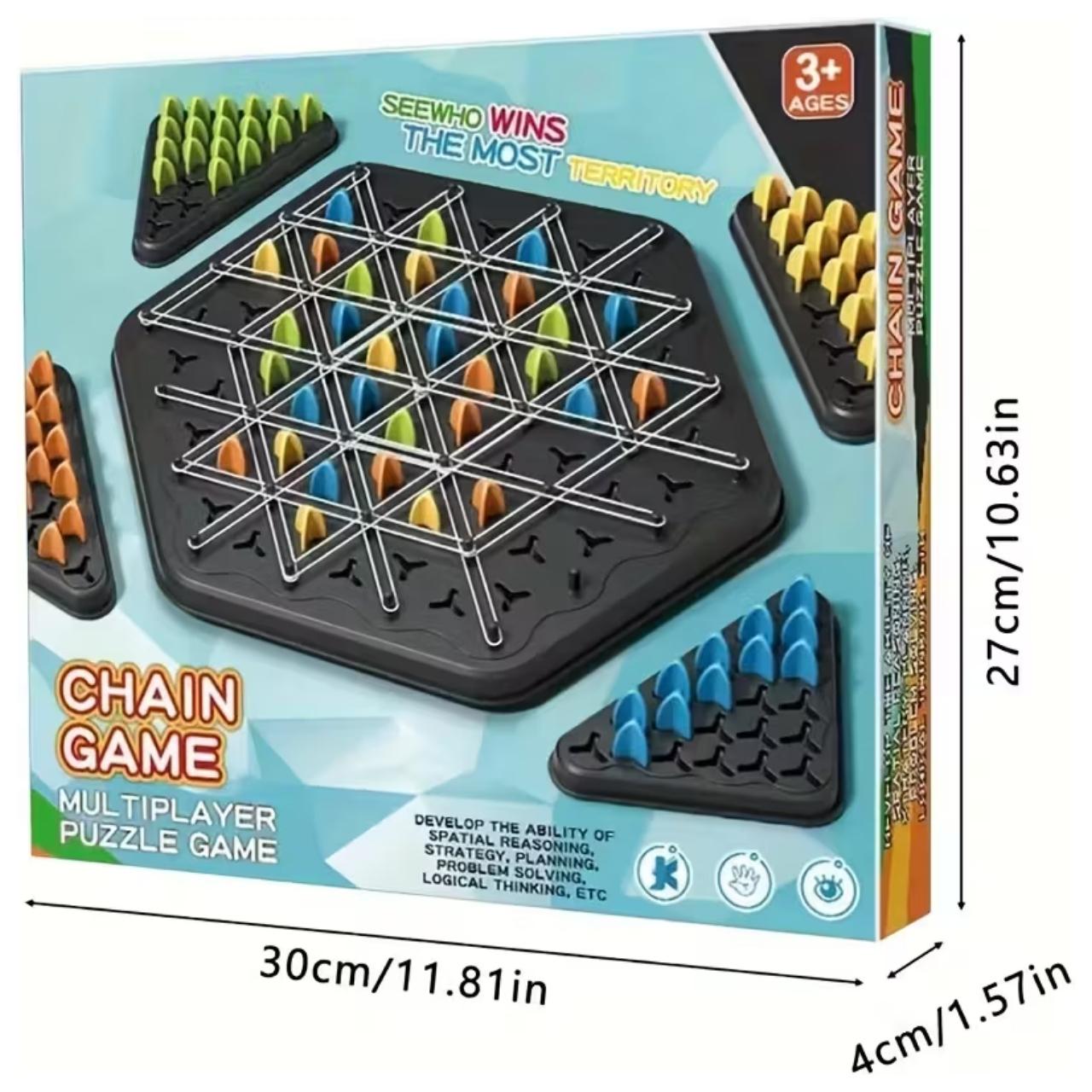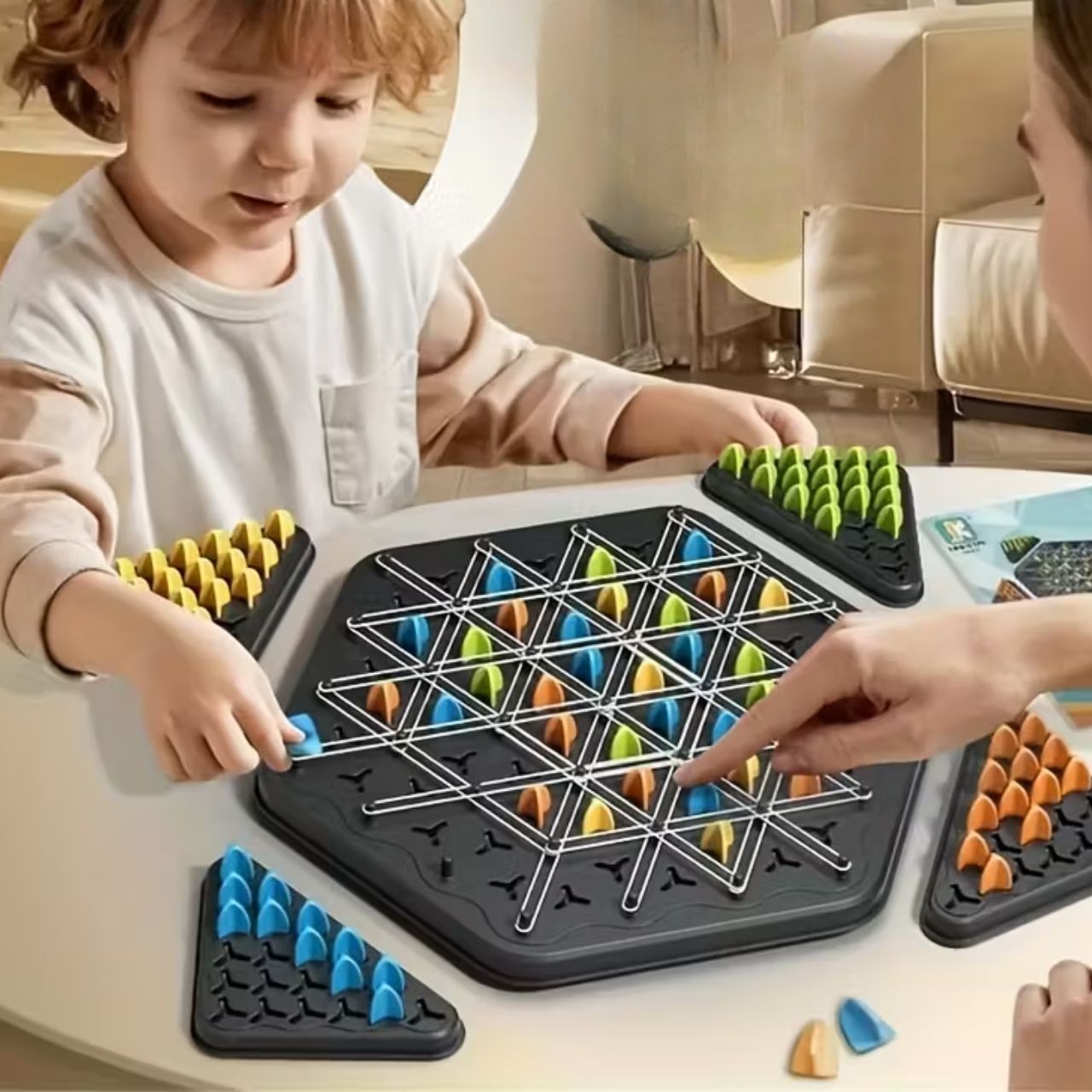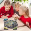 1x žaidimo lenta, 4x mažesnės lentos, 4 spalvų figūros, gumelės