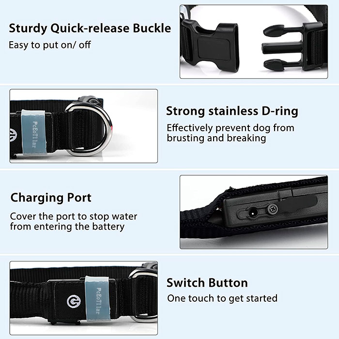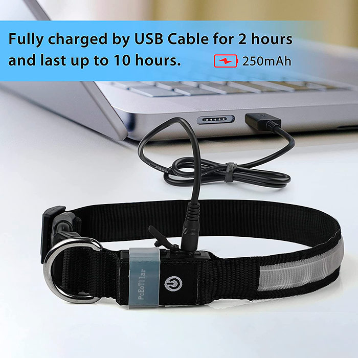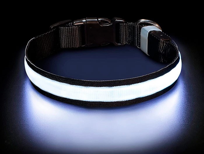 Šuns antkaklyje yra įmontuota LED šviesa, kuri padaro jį saugesnį kelyje!