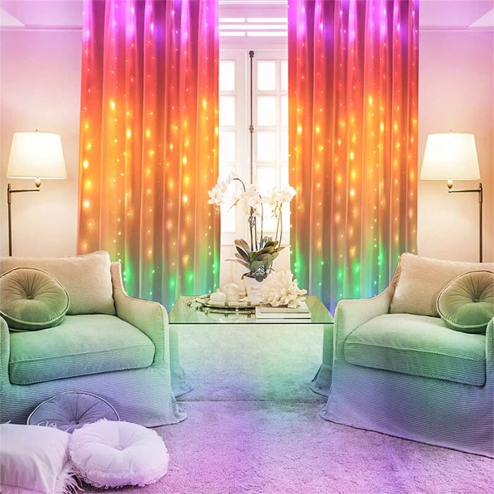 Su pridedamu nuotolinio valdymo pultu galite pasirinkti iš 8 skirtingų šviesų užuolaidos mirksėjimo režimų!