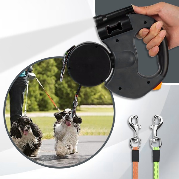 Be susipainiojimo vedžiojant du šunis! FlexiPaws leidžia lengvai vesti du šunis vienu metu be pavadžių susipainiojimo. Mėgaukitės atsipalaidavusiais pasivaikščiojimais su savo augintiniais.