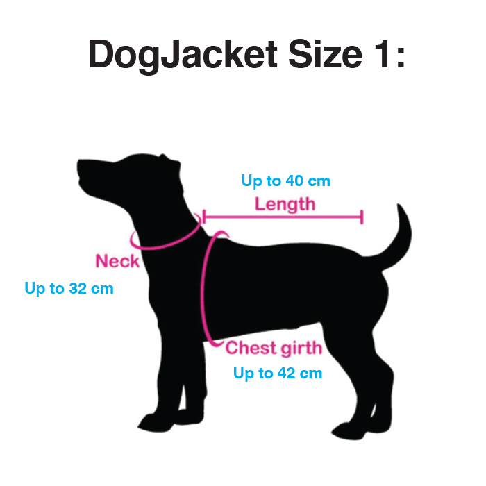 1 dydis (S/M): tinka šunims, kurių nugaros ilgis iki 40 cm kaklo apimtis iki 32cm, o krūtinės apimtis iki 42cm. Tinka maltietiškai, Pomeranijos, į jorkšyro terjerus, Pekinas, Džeko Raselio terjerai mopsas, mini šnauceriai ir kitos panašios didelės veislės. 2 dydis (L/XL): tinka šunims, kurių nugaros ilgis iki 54 cm kaklo apimtis iki 40cm, o krūtinės apimtis iki 50cm. Tinka Bostono terjerams, biglis, kokerspanieliai ir panašios didelės veislės.