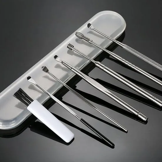 EarCleaningKit, 7 dalių rinkinys su priedais saugiam ausų valymui