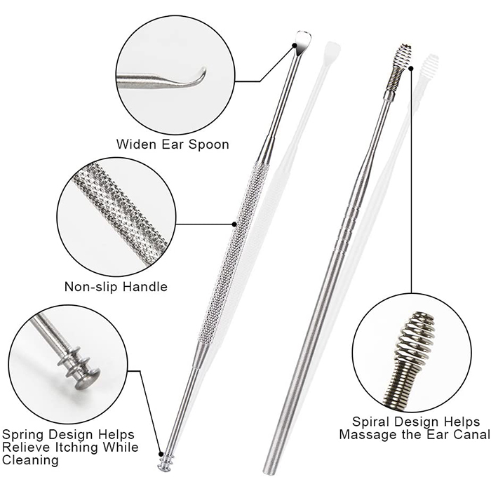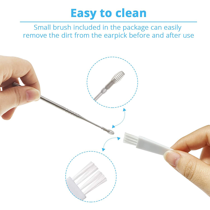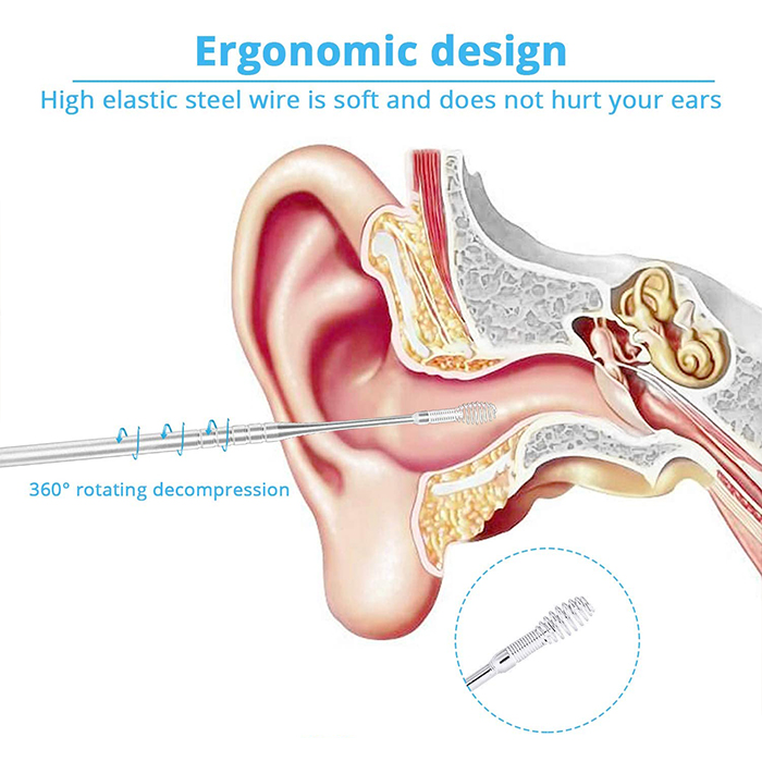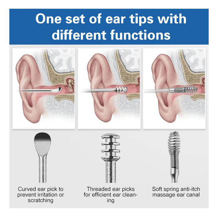 Jame yra visi reikalingi įrankiai saugiam ir kruopščiam ausų valymui, nesvarbu, kokia jūsų ausies kanalo forma ar dydis!