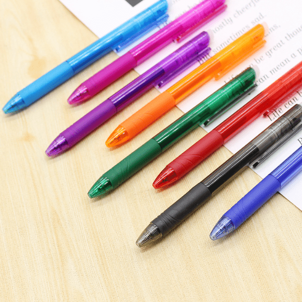 Kiekvienas rašiklis turi 0,5 mm galiuką tiksliam rašymui ir lengvą vieno paspaudimo mechanizmą.