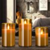 Auksinės žvakės su šiltomis geltonomis liepsnomis sukuria nuostabią atmosferą!