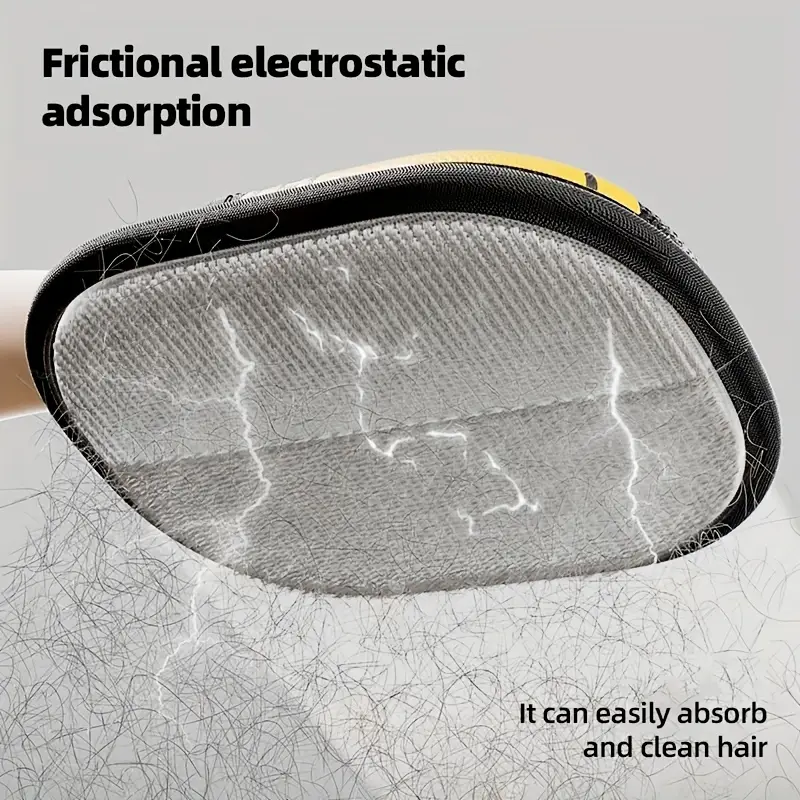 Pirštinė apsaugo nuo statinės elektros kaupimosi, o plaukai greitai sugriebiami ir neišsibarsto po kambarį.