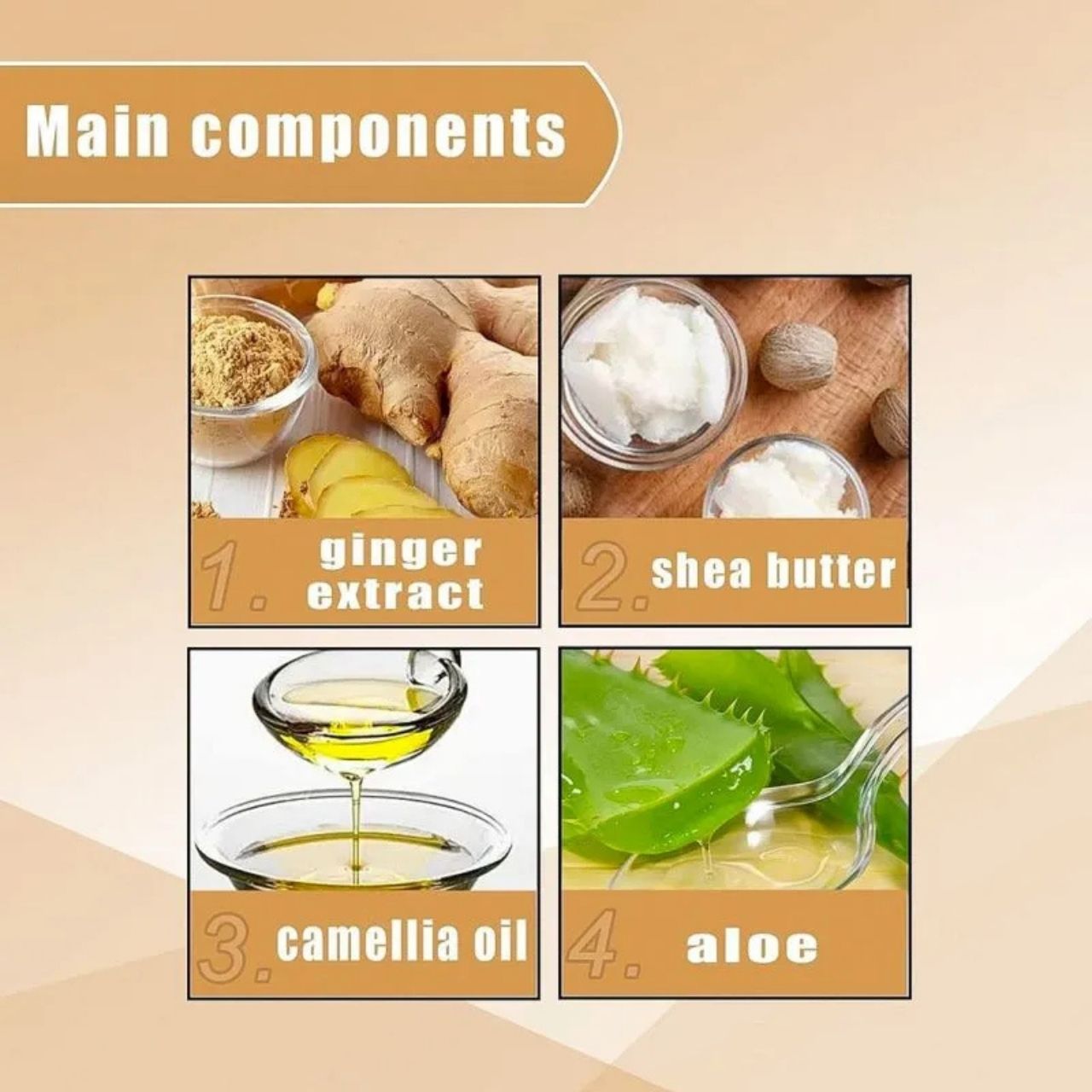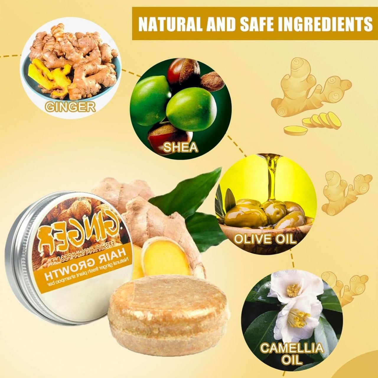 Sudėtyje yra ženšenio, imbiero, alyvuogių aliejaus ir mėtos; tinka visų tipų plaukams