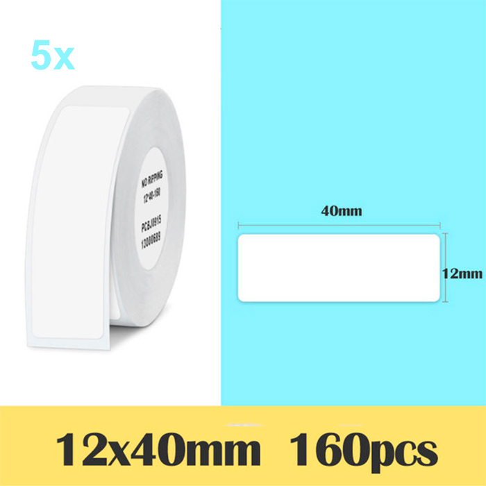 160 etikečių viename ritinyje; 12 x 40 mm (etiketės dydis)