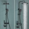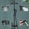 Rekomenduojame, kad dušo rinkinį įrengtų tinkamas rangovas, pvz., santechnikas. Įsitikinkite, kad turite reikiamus įrankius montavimui (raktas, atsuktuvas, Tefloninė juosta). Pasirinkite tinkamą vietą vonios kambaryje dušo stulpui įrengti. Naudokite pateiktus varžtus ir laikiklius, kad pritvirtintumėte stulpą prie sienos. Įsitikinkite, kad stulpas tvirtai pritvirtintas ir kad jį galima reguliuoti aukštyje. Priveržkite dušo galvutę prie stulpo viršaus. Įsitikinkite, kad ji tvirtai pritvirtinta ir kad nėra vandens nuotėkio. Pritvirtinkite rankinio dušo laikiklį norimame stulpo aukštyje. Sujunkite rankinį dušą ir purkštuvą su pateiktomis žarnomis. Įsitikinkite, kad visi sujungimai yra tvirti ir kad nėra nuotėkio. Prijunkite skaitmeninį LED ekraną prie stulpo ir prijunkite jį prie pagrindinio vandens tiekimo. Įsitikinkite, kad visi elektros sujungimai yra saugūs ir kad ekranas prijungtas teisingai. Atidarykite pagrindinį vandens vožtuvą ir patikrinkite, ar vanduo teka per visus sujungimus be nuotėkio. Reguliuokite dušo stulpo aukštį pagal savo poreikius.