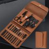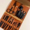 2x nagų žirklės: sutrumpina nagus, 1x nagų šlifavimo priemonė: padaro nagus apvalius ir lygūs, 1x negyvos odos šakutė: sutrumpina nagus, ragus, negyvą odą ir kt., 2x dvipusės nagų valymo priemonės: pašalina nešvarumus po nagais, atsargiai atitraukia nagų kutikulas ir pašalina seną nagų laką, 1x valymo šepetėlis valymo priemonėms valyti