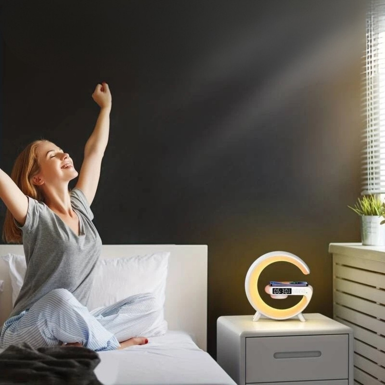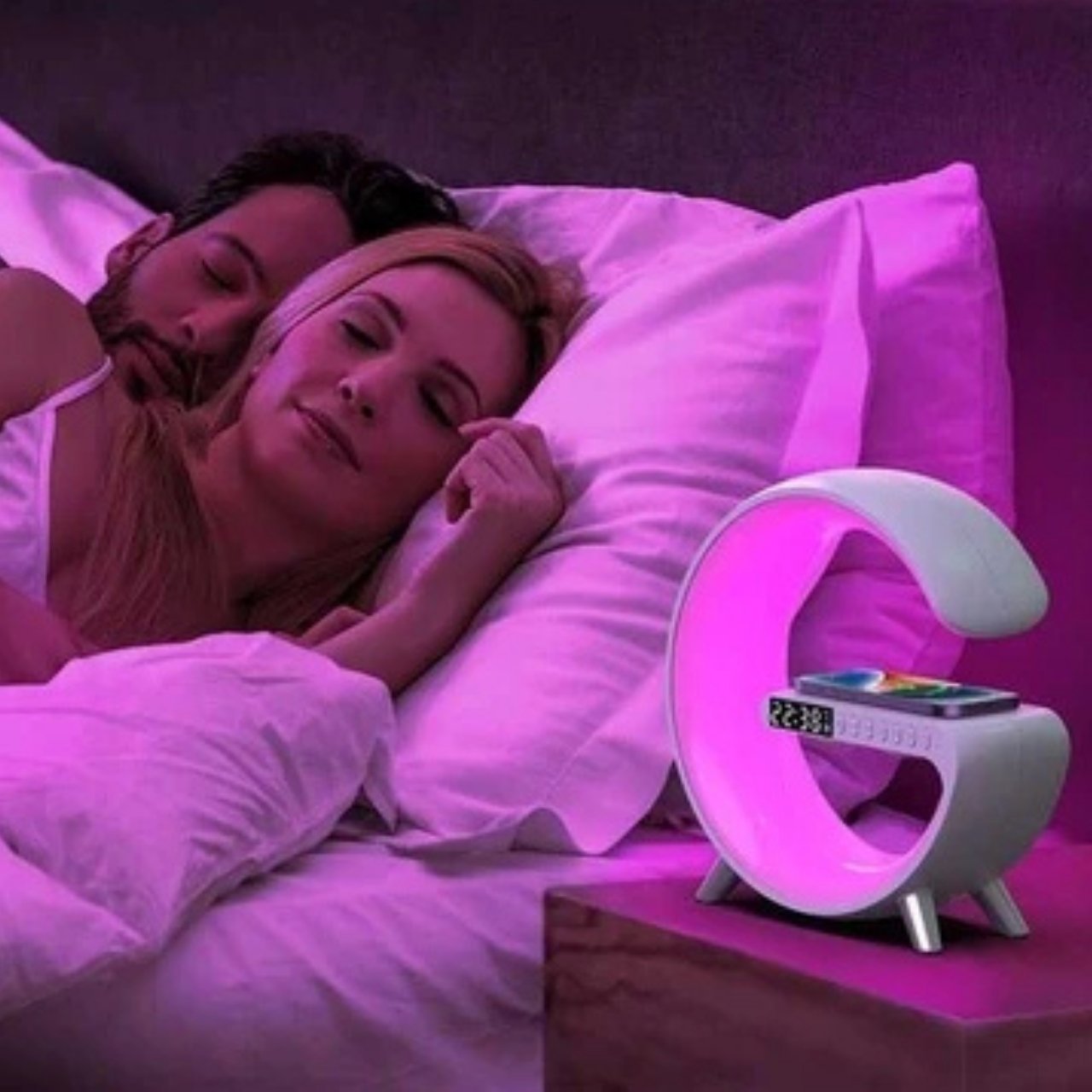 Belaidis įkrovimas, naktinė šviesa, žadintuvas, Bluetooth garsiakalbis