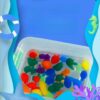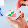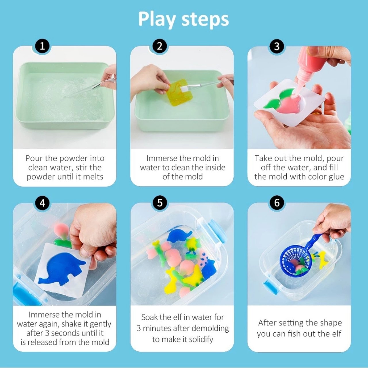 Paruoškite tirpalą. Sumaišykite kalcio laktato paketėlį su 1 litru vandens, kol visiškai ištirps. Panardinkite modelį į tirpalą ir įsitikinkite, kad jis gerai įmirkęs. Užpildykite formą pasirinktomis spalvomis. Panardinkite modelį su spalvomis į vandenį, kad sukietėtų dizainas. Palikite formas vandenyje bent 15 minučių. Tačiau, palikus 3-4 valandoms, gausite geriausius rezultatus.