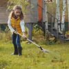 Lapų, žolės ir smulkių šiukšlių valymui sode. Galvutė išsiplečia nuo 20 cm iki 56 cm ir užsifiksuoja bet kokiame pločyje. Teleskopinis kotas reguliuojamas nuo 81 cm iki 160 cm, leidžiantis šluoti nesilenkiant.