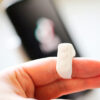 4 x 4 x 2 cm (dėžutė), 2,4 x 2,4 x 1,2 cm (žiedo formos nuotolinis valdymas)