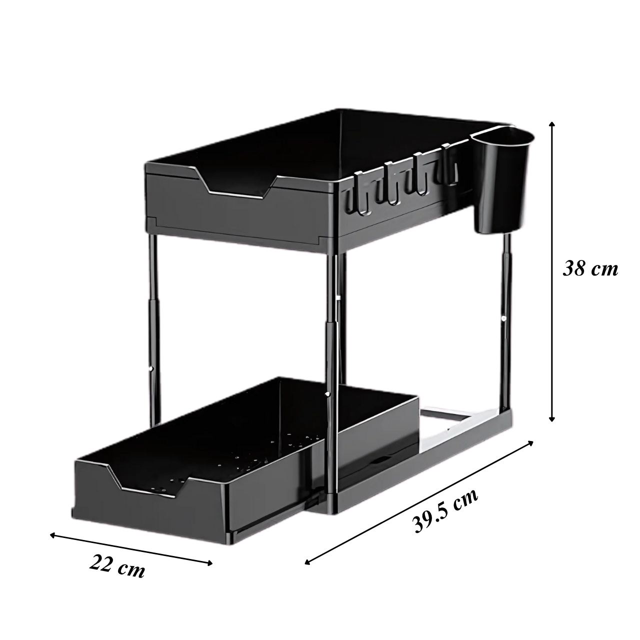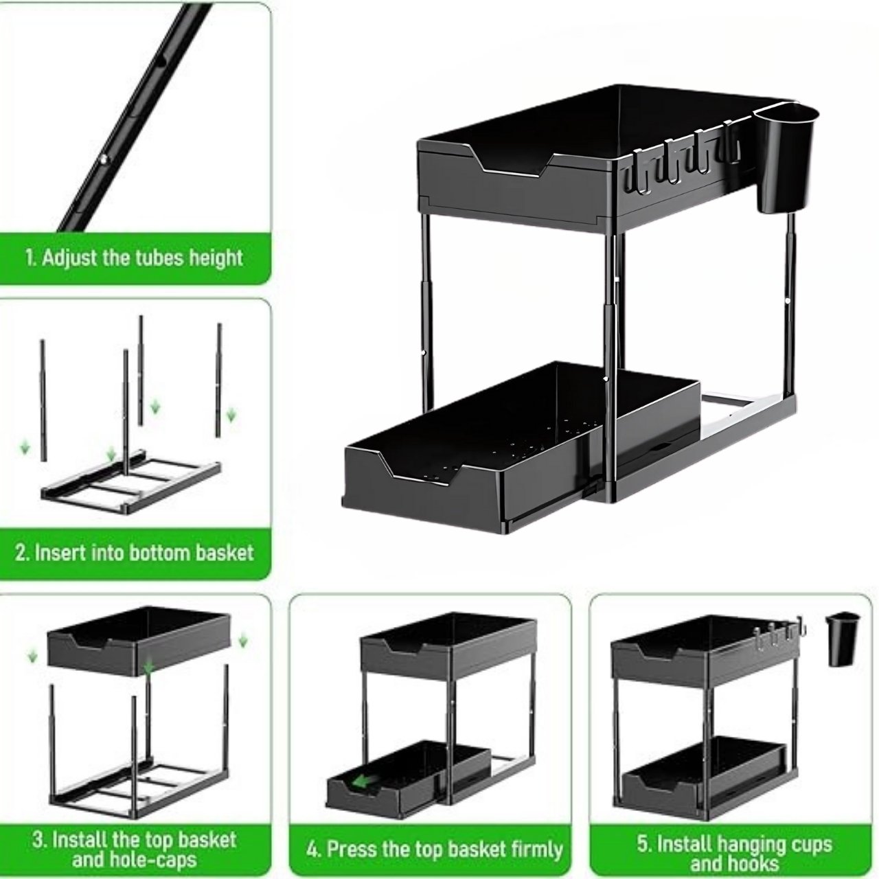 Pridedami kabliukai idealiai tinka kempinėms, virtuvės įrankiams ar rankšluosčiams kabinti - viskas visada po ranka.