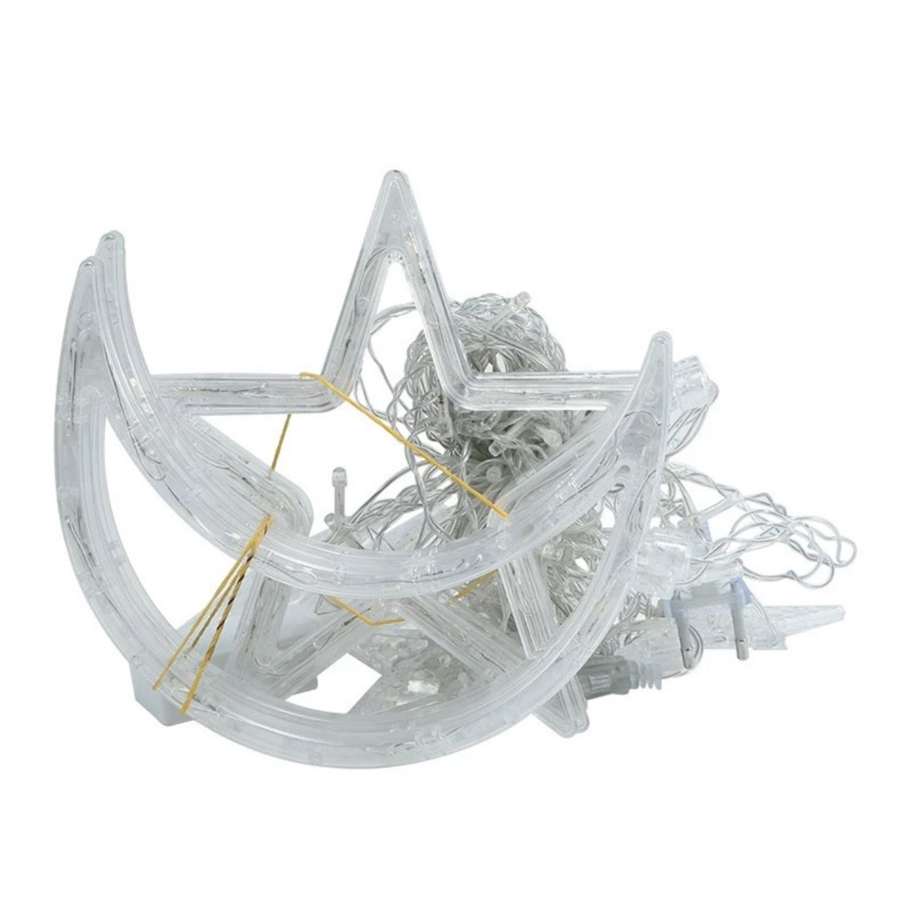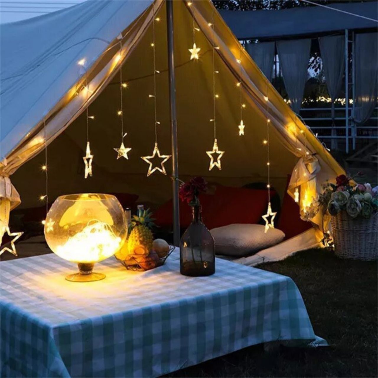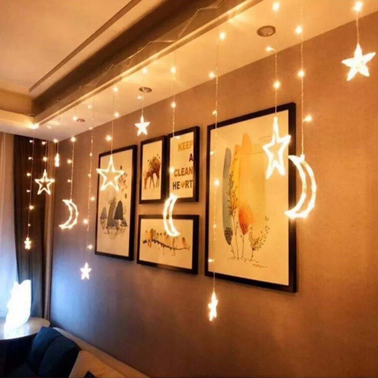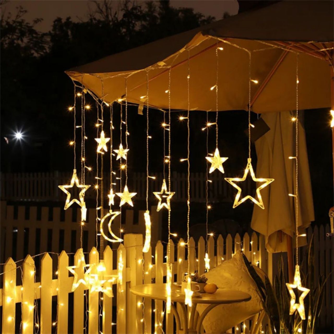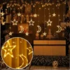 1x dekoratyvinių lempučių rinkinys su žvaigždžių ir mėnulio motyvu su lizdo jungtimi (12 dekoratyvinių žvaigždžių ir mėnulių)