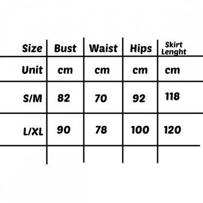 Aukščiausia kokybė ir modernus dizainas užtikrina, kad visada būsite madingi. Suknelė siūloma dviejose dydžių: S/M ir L/XL, todėl ji tinka įvairioms figūroms.