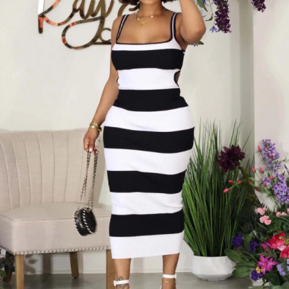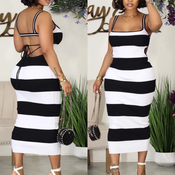 Atraskite suknelę su juodai baltais dryžiais, kuri sujungia stilių ir komfortą viename. Ji idealiai tinka kasdieniam dėvėjimui arba ypatingoms progoms.