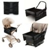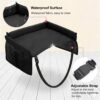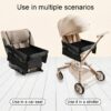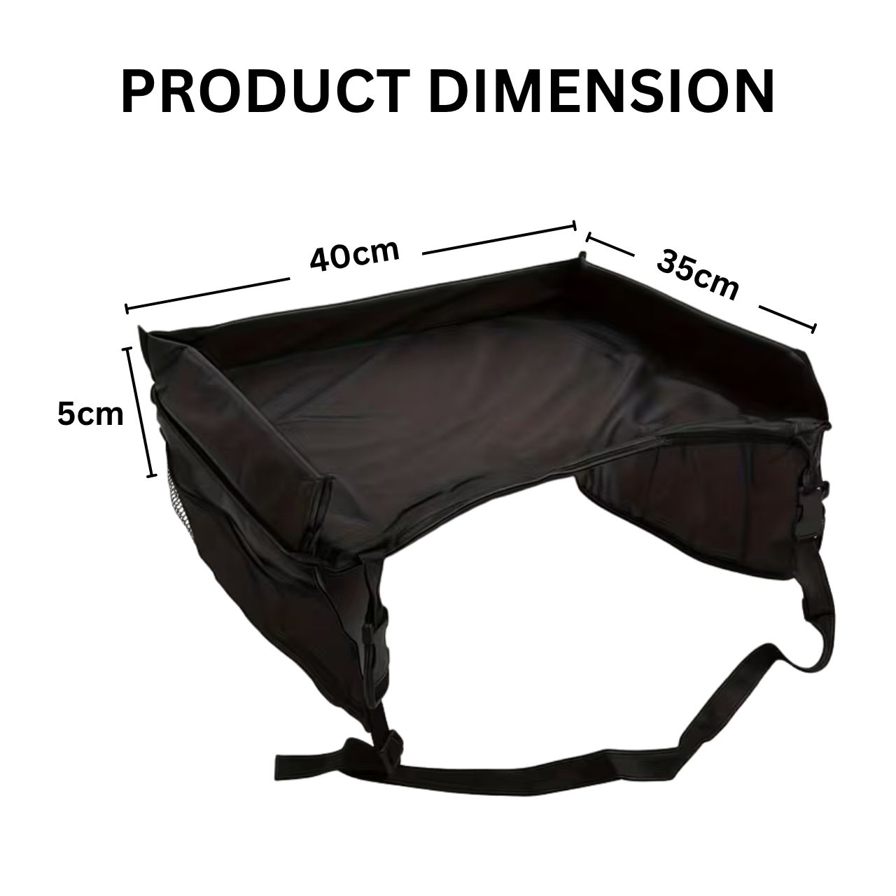 • Kelioninis staliukas turi reguliuojamas diržas su sagtimis. Tiesiog uždėkite diržą aplink sėdynę ir užsegkite saugos sagtimi. Taip pat galite reguliuoti diržo ilgį.