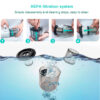 Modernus HEPA filtras efektyviai sulaiko ir izoliuoja smulkias daleles, palaikydamas jūsų namus švarius ir be dulkių erkučių!